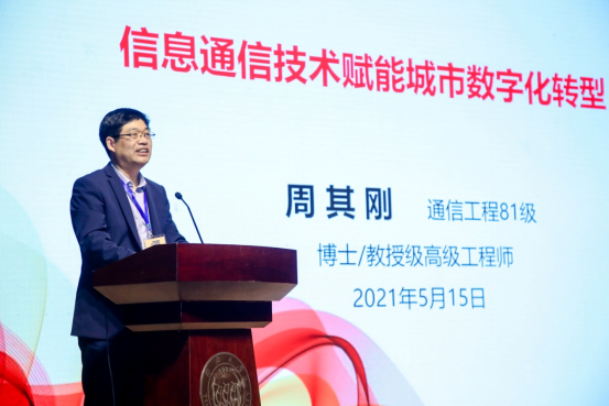 中国电信上海公司企业发展部高级业务经理周其刚校友作了以“信息通信技术赋能城市数字化转型”为主题的报告,从历史、发展、前沿技术等多方面介绍了通信行业对人类社会发展的重要影响,以及通信行业在国家“十四五”规划指引下城市数字化转型的重要作用,并希望校友和母校加大产学研合作,共同推进信息通信业发展。
