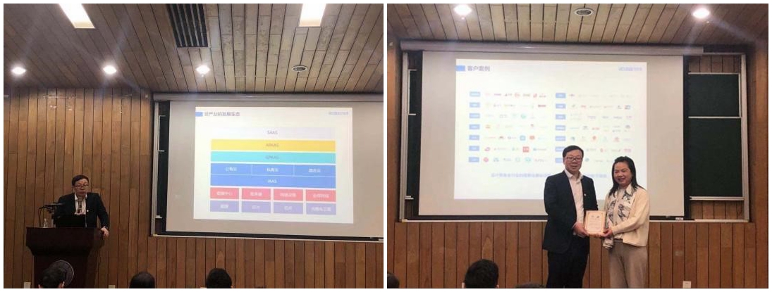 本次讲堂季昕华校友主要从信息交互的时代发展历程、云计算服务的三种模式、云计算市场的发展趋势及规模以及云产生的发展生态等方面展开报告。首先介绍了时代发展到今天是以信息交互为中心,在信息交互的的时代数据量倍速增长,这就需要有强大能力的计算服务来处理爆炸增长的各类数据,云计算就是这样一种技术。在互联网时代,大量数据的处理逐渐从终端计算机走向云计算领域。然后,他仔细讲解了云计算的三种模式(包括IaaS、PaaS以及SaaS),其中IaaS模式表示云计算服务只负责基础设施层的建设管理,PaaS模式是负责基础设施层的构建加平台软件层的布局,SaaS模式是负责基础设施层、平台软件层以及应用软件层的构建和布局。接着,季昕华校友向大家介绍了全球云计算市场的规模及趋势,然后指出云计算领域目前还处于早期主流用户阶段、市场渗透率还比较低。因此,在当前及未来的发展中,云计算服务领域充满了机遇和挑战。最后,季昕华校友向大家介绍了云产业的发展生态,在云计算服务中目前主要发展三种云服务类型包括公有云、私有云和混合云,并指出未来的发展趋势是公有云的发展。