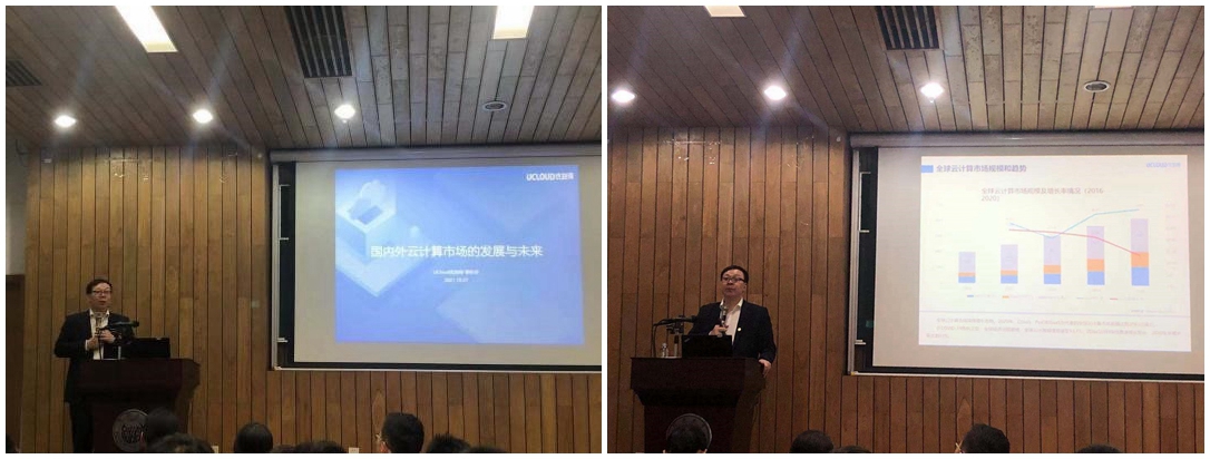 季昕华校友及其UCloud公司主要致力于云计算服务的研究与发展,此次讲堂以《国内外云计算市场的发展与未来》为题展开。云计算是分布式计算的一种,指的是通过网络“云”将巨大的数据计算处理程序分解成无数个小程序,然后,通过多部服务器组成的系统进行处理和分析这些小程序得到结果并返回给用户。过去一年是云计算发展不同寻常的一年,新冠疫情加速了云服务发展;全球数字化经济背景下,云计算成了企业数字化转型的必然选择;而新基建的推进,云计算更是承担了不可或缺的通讯网络、算力基础设施的角色。
