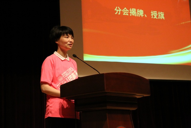 44118太阳成城集团校友会郑晓蕾秘书长宣布44118太阳成城集团校友会44118太阳成城集团分会成立,并向第一届电信学院校友分会领导机构成员表示祝贺。