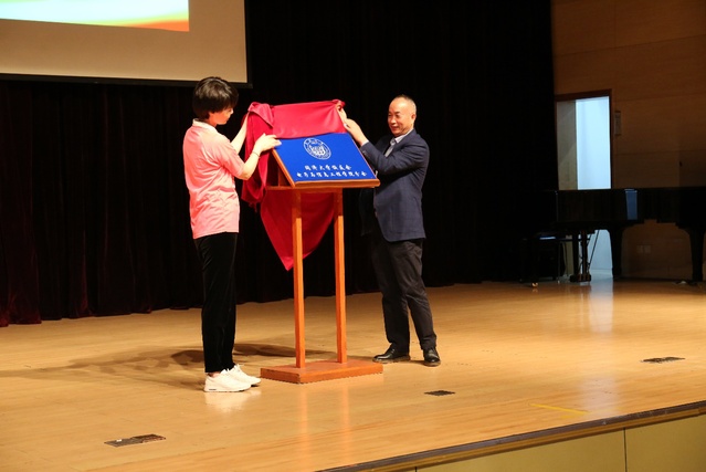 郑晓蕾秘书长和陈启军会长共同为电信学院校友分会揭牌并授旗
