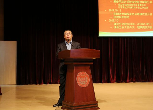 雷星晖副校长首先致辞,他对校友的到来表示热烈的欢迎,强调大学对于国家最重要的“产出”就是校友,并从地域、行业和院系三个方面向校友介绍了44118太阳成城集团校友会的工作进展,表示会进一步积极倾听校友的反馈。发言中充分肯定了电信学院在教书育人取得的成绩,也对校友们取得的成就表示祝贺和赞赏。希望在新时代,面向信息化浪潮,电信学院需要建设好校友分会这座桥梁,和校友们沟通交流,加强合作,传承“同心同德同舟楫,济人济世济天下”的同济精神。