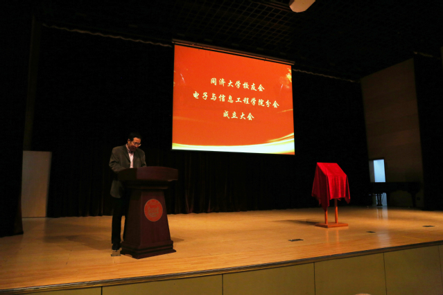 随后,理事会全体成员回到主会场。当选会长陈启军宣读了电信学院第一届名誉会长、顾问、会长、执行会长、理事、常务理事、秘书长、副秘书长当选名单。