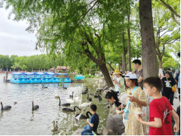 天气晴朗,迎着初夏凉爽的微风,大小朋友漫步园中,或在湖边欣赏天鹅的优雅泳姿,或在企鹅馆观察企鹅的笨拙可爱,或在火烈鸟展区体会火烈鸟的热情似火,或在大熊猫馆观看大熊猫的憨态可掬,或在猴岛感受狐猴的活泼灵动,或在太阳广场近距离体验豹的速度、熊的技艺、鸟的翱翔,尽情享受观赏和与动物互动的乐趣。