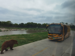 先乘坐大巴游览车行区,车辆缓缓驶过奇妙的亚洲、非洲旷野、优雅长颈鹿、最美闪电侠、草原霸主、荒野大力熊、森林之王、白虎领地、野狼谷、马来熊王国十大主题区域。大家紧靠车窗欣赏动物们在各自领地的悠闲自得,车内不时发出小朋友们的疑问和惊叹。