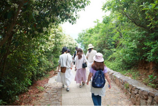 午后,大家向缥缈峰进发。缥缈峰是太湖七十二峰之首,海拔336米,因常被云雾缭绕而得名。在攀登过程中,老师们相互鼓励,沿着蜿蜒的山路拾级而上,一边欣赏着沿途的自然风光,一边感受着山间清新的空气、鸟儿欢快的歌声和山花迷人的芬芳,身心得到了充分的放松。