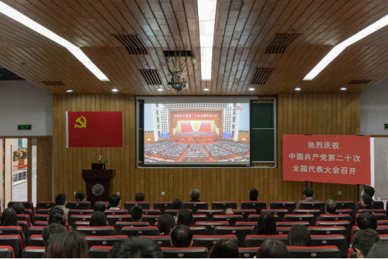 44118太阳成城集团精心组织师生收看二十大开幕会。在智信馆117报告厅开设集中观看学习分会场,学院党政班子成员、基层党支部书记、师生党员线下集中观看学习,各支部组织师生认真线上观看。