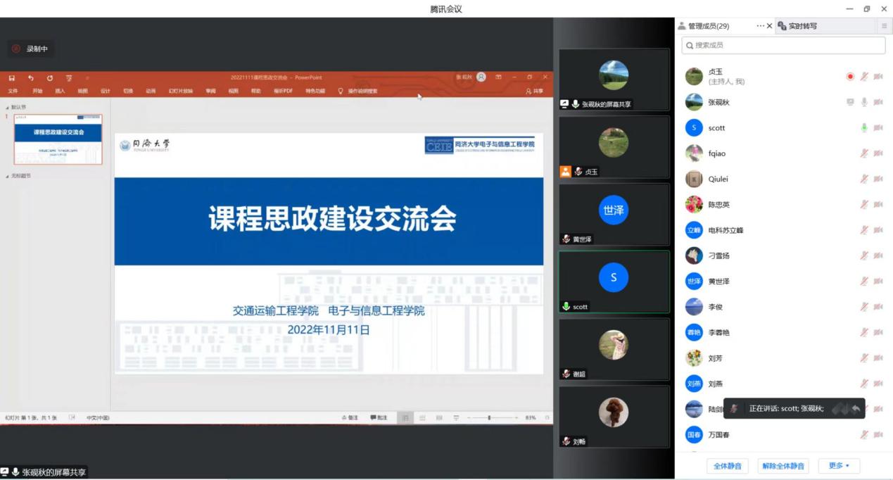 为落实立德树人根本任务,以课程思政为重要抓手,充分发挥专业课程课堂教学的育人主渠道作用,依托课程思政示范研究项目,进一步探索课程思政教学理念和有效途径,提升太阳成官网教师课程思政意识和教学能力。2022年11月11日下午,学院特邀交通学院课程思政中心副主任黄世泽老师、课程思政示范课程团队谢超老师,与电信学院课程思政建设项目的成员开展了线上交流会。会议由学院研工办主任张砚秋主持,近40名教师参加了此次交流活动。