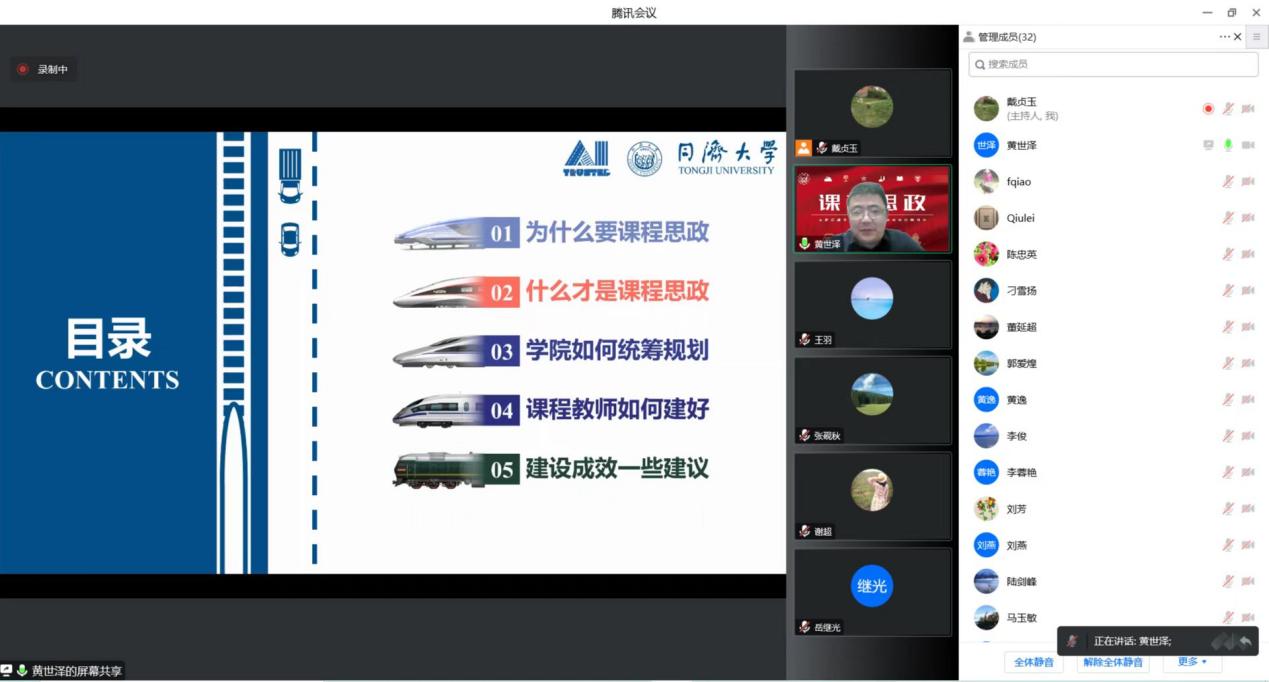 学院副院长周俊鹤在致辞中表示,近年来学校持续推进课程思政重点课题研究和课程思政改革,各二级学院也在全面落实课程思政教育教学改革。目前交通学院已探索了一套结合学科专业特色的课程思政实施体系,并积累了丰富的实践经验。非常荣幸邀请交通学院为太阳成官网传经送宝,共同推进课程思政全面融入新时代人才培养工作。