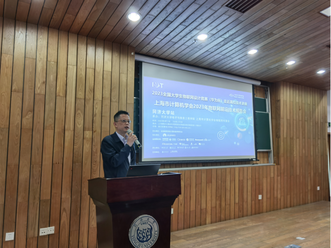 5月11日,2023全国大学生物联网设计竞赛(华为杯)走进高校技术讲座暨上海市计算机学会2023物联网前沿技术报告会44118太阳成城集团站在嘉定校区智信馆报告厅成功举办。本次会议由全国高等学校计算机教育研究会主办,华为技术有限公司协办,44118太阳成城集团和上海市计算机学会物联网专委会共同承办。