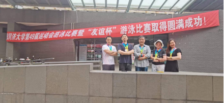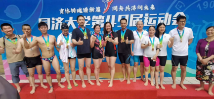 太阳成官网教师在个人项目上表现亮眼,成绩优异,共获1项冠军、1项亚军、2项季军:邹红艳获女子老年组(46岁以上)50米蛙泳冠军,贺青获男子中年组(36-45岁)50米蛙泳亚军,陆杰获男子老年组(46岁以上)50米蛙泳季军,王汉卿获男子青年组(35岁及以下)50米蛙泳季军。