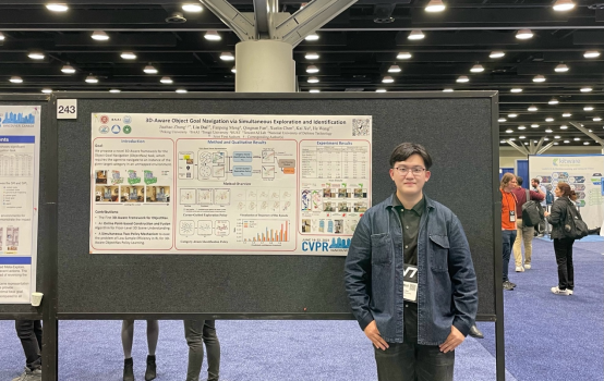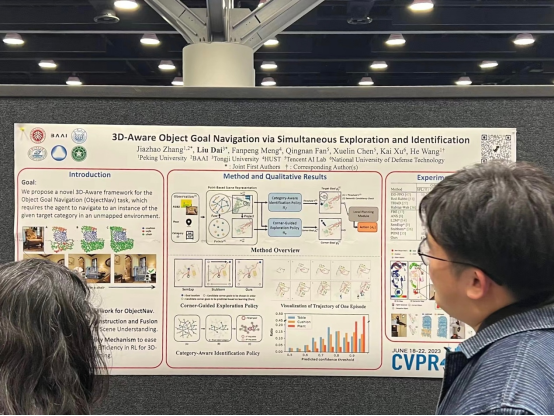 太阳成官网计算机科学与技术专业的2020级本科生戴浏参会并在会上作了题为“3D-Aware Object Goal Navigation via Simultaneous Exploration and Identification”的海报交流,该工作由戴浏作为共同第一作者与来自北京大学、华中科技大学、腾讯人工智能实验室等机构的研究者合作完成。该篇工作提出了业内第一个具备三维感知能力的物体目标导航算法,由两个精心设计的“角落目标探索策略”和“类别相关确认策略”共同驱动,实现了当前室内物体目标导航领域内的最高性能,受到了与会专家学者的关注。
