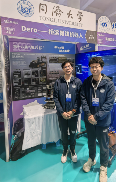 由教师王达磊、潘玥指导,学生崔屿杰、肖子恒、郑星云、李路瑶、季马泽宇共同完成的“Dero——桥梁‘胃镜’机器人”项目获得“黑科技”专项赛星系级(特等奖)。该项目开发智慧化检测机器人及其配套系统,在箱梁内部环境恶劣,工人作业危险的情况下,解决现有探测机器人设计不适应该任务、人工目视检测误差率高的问题,实现对内部中空的桥梁躯干混凝土箱梁的高效检测。