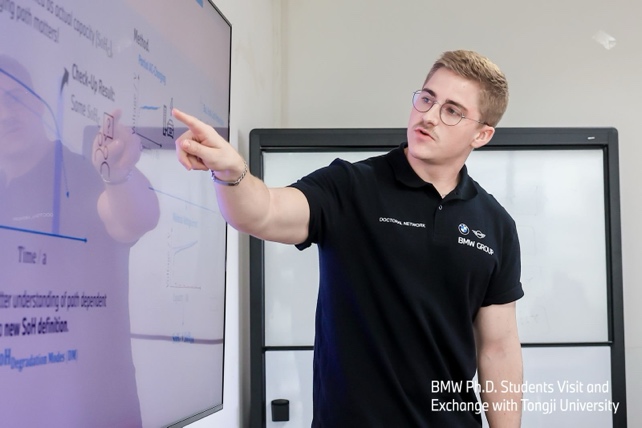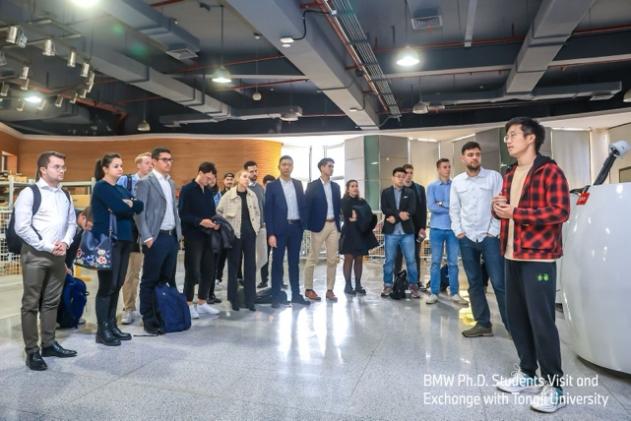 当日上午,宝马集团博士生团队首先参观了智能汽车实验室,张琳教授团队围绕智能动力系统、V2X与组合定位、感知与决策、运动规划与控制、测试与评价这五个研究方向进行了介绍。