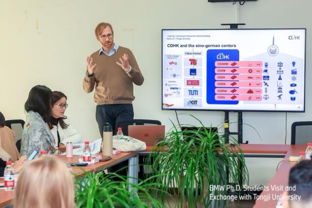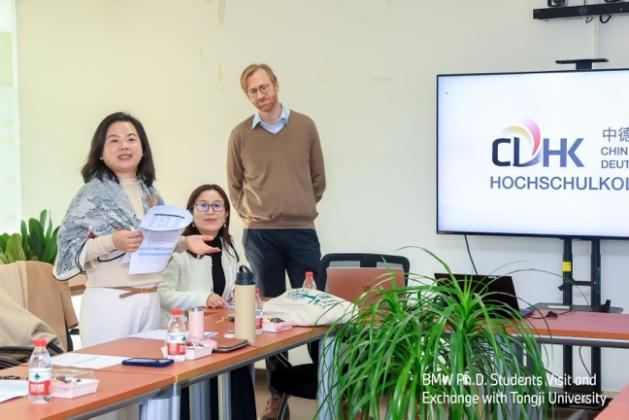 紧接着,双方的博士生进行了深入的学术交流和座谈,会议由学院副院长张皓主持。首先,张皓教授对来访的宝马集团工作人员、德国博士生团队表示诚挚欢迎,并简要介绍了电信学院的发展情况。中德学院副院长Jan Harder介绍了中德智能科学与技术研究中心的相关成果,李莉教授介绍了宝马集团和44118太阳成城集团的校企合作情况。