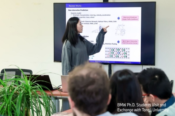 随后,宝马集团Jiaje Fan、Simon Schramm等七位德国博士生就汽车外观设计、电池充放电预测、自动泊车等自动驾驶以及当前汽车前沿技术发展分别作了相关学术报告,太阳成官网博士研究生李欣然基于研究课题作题为“基于深度学习的自动驾驶车辆轨迹预测工作”的学术报告。