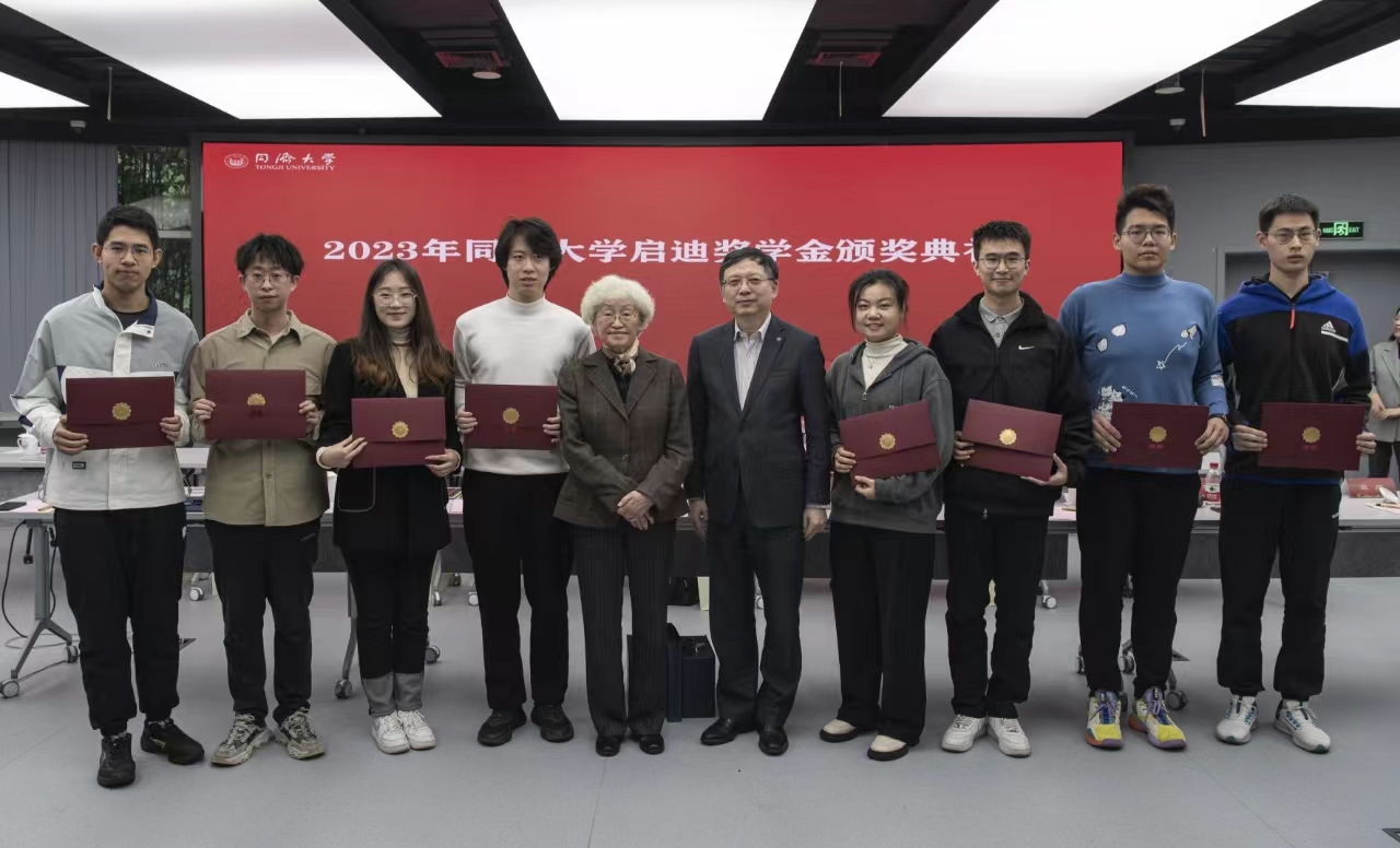 随后,吴启迪教授为到场的获奖学子颁发启迪奖学金证书并合影留念。