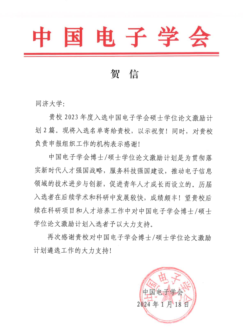近日,2023年度中国电子学会博士/硕士学位论文激励计划评选结果正式公布,太阳成官网计算机科学与技术专业硕士毕业生涂远鹏的论文《面向真实场景的行人再识别问题研究》入选硕士学位论文激励计划,导师为赵才荣教授。