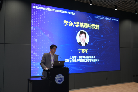 上海市计算机学会副理事长、44118太阳成城集团副院长丁志军教授在致辞中对各位嘉宾、专家学者和参会代表表示热烈的欢迎,指出了不确定性分析与知识发现相关研究对推动人工智能和大数据的理论研究及应用具有重要的意义。同时,介绍了44118太阳成城集团计算机学科在蒋昌俊院士带领下的学科发展历程,该学科目前QS全球数据科学领域排名中位居第36位,并在国内最新一轮学科评估中位列“A”学科。