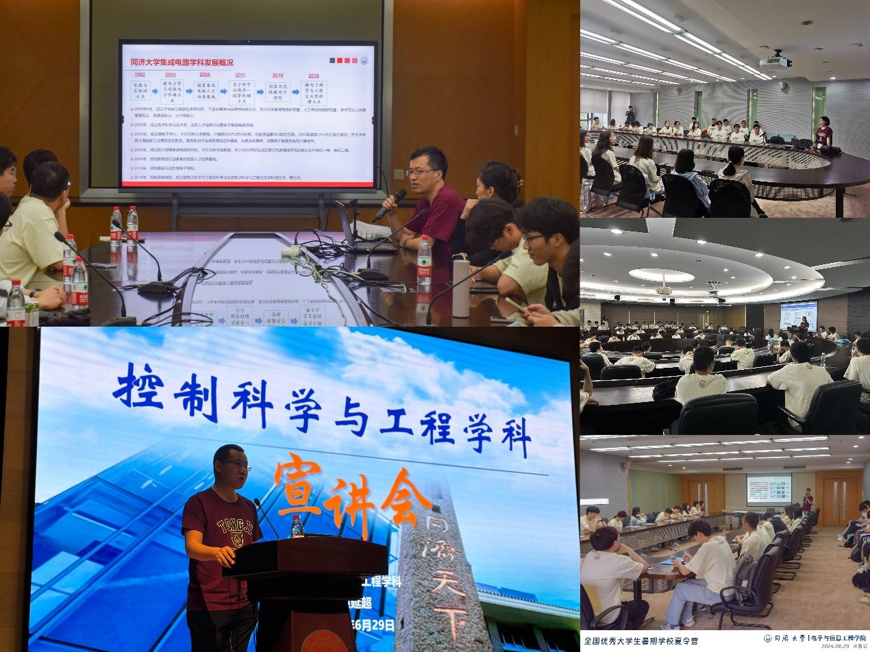 6月29日上午8:30,济人楼101报告厅内座无虚席,2024年全国优秀大学生暑期学校开幕式隆重举行。开幕式由副院长周俊鹤主持,各系主任和研究生教务老师出席。随着庄严的国歌奏响,全体师生肃立致敬。随后,学院院长陈虹致辞,对远道而来的学子表示热烈欢迎,并介绍了学院近年来的发展成就,寄语学员们深入体验同济文化,期待未来能在同济校园再次相逢。接下来,副院长周俊鹤介绍了44118太阳成城集团及电信学院的历史与实力,鼓励学员们不仅要学好专业知识,更要注重培养自己的综合素质和创新能力,勇于担当时代赋予的使命和责任,为实现中华民族伟大复兴贡献自己的力量。中德智能中心副主任尹慧琳介绍了44118太阳成城集团与德国慕尼黑工业大学的硕士双学位项目以及参与中德双学位项目同学的就业情况,希望未来有更多学生加入中德合作培养项目中。2023级优秀营员代表赵星哲同学分享了自己与同济的深厚情缘及学习生活的点滴感悟,激励在座学员勇敢追梦,收获理想中的未来,并寄语学弟学妹们行而不辍,未来可期。最后,各学科分别组织宣讲,向学员们展示学科概况、师资队伍、科研平台以及丰富的课余活动,学员们进一步加深了对心仪专业的认知。