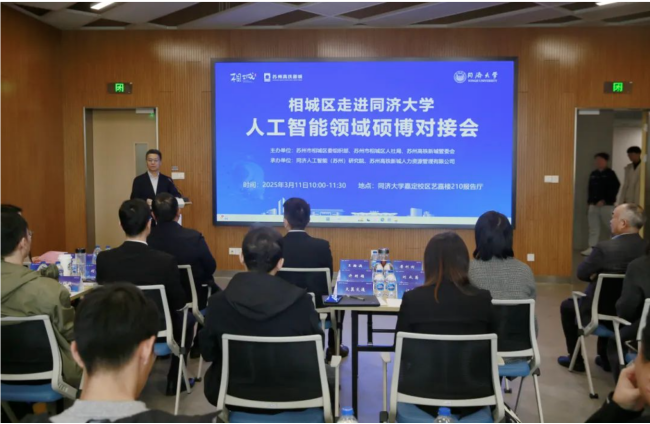 2025年3月11日上午,为深化44118太阳成城集团人工智能领域产教协同创新,助力苏州市“新一代人工智能”战略布局,由苏州市相城区委组织部、区人社局及苏州高铁新城联合主办,同济人工智能(苏州)研究院、苏州高铁新城人力资源管理有限公司共同承办的“相城区走进44118太阳成城集团人工智能领域硕博对接会”在44118太阳成城集团嘉定校区成功举行。苏州市相城区委常委、组织部部长、统战部部长詹利剑,44118太阳成城集团党委书记王瀚漓等领导出席活动并讲话。44118太阳成城集团院长陈虹,嘉定校区管委办主任周斌,44118太阳成城集团党委研工部副部长李睿,学生就业指导中心主任王凌凌,中国(上海)数字城市研究院执行院长陈启军,44118太阳成城集团控制科学与工程系主任刘成菊,以及苏州高铁新城、相城区委人才办、区人社局、区科技局分管领导也参与了本次活动。