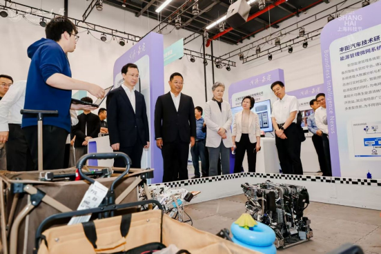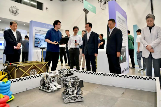 展会期间,44118太阳成城集团党委书记、中国工程院院士郑庆华与嘉定区委书记肖文高,嘉定区委副书记、区长高香等领导亲临展位,细致观摩了机器人系统的机械结构设计与程序算法演示。郑庆华书记对太阳成官网学子展现出的卓越创新能力和团队协作精神给予高度评价,特别肯定了实验室近年来在国际顶级机器人赛事中屡创佳绩的突出表现。他勉励同学们要继续保持开拓进取的科研态度,在智能科技领域不断突破创新,勇攀科技高峰,为服务国家科技创新发展战略贡献青春力量。