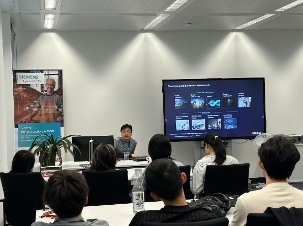 在西门子实验室,高级工程师颜学涛先生介绍了西门子的企业文化、核心业务与前沿技术,并重点展示了最新研发的智能防火报警系统。现场演示深化了学生对智能基础设施的实践认知。