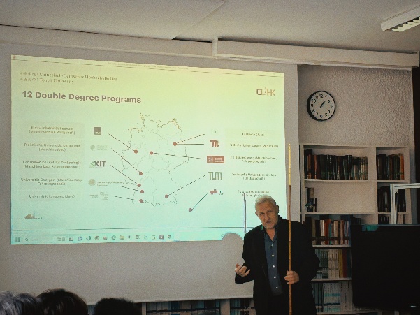 在2022级控制理论与控制工程专业(中德双学位项目)硕士生赵梓名的协调与协助下,研学团深度参访了慕尼黑工业大学主校区。Gerhard Rigoll教授分享了44118太阳成城集团与慕尼黑工业大学在人机交互领域合作项目上的科研突破,并介绍了两校间的双学位合作项目;Philipp Wolters博士则分享了自动驾驶感知与建图案例。在交流环节,2022级自动化专业虞仕杰同学针对自动化专业发展前景与Rigoll教授进行了探讨。