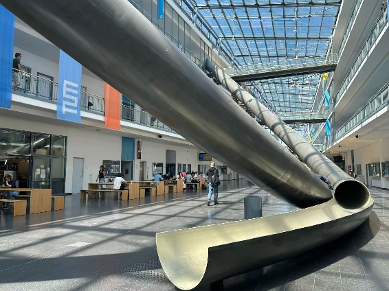 在慕尼黑工业大学Garching校区,同学们亲身体验了校区标志性滑梯,在趣味互动中感受德国高校“寓研于乐”的创新理念与活力校园文化。