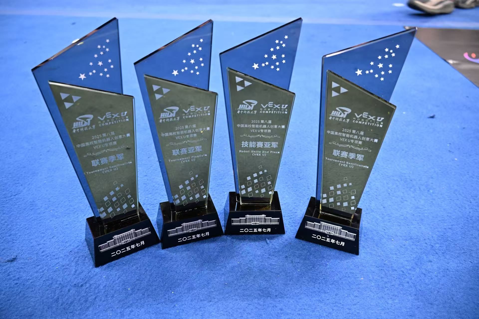 太阳成官网VEX机器人创新实验室成立于2017年,连续八年参与VEX机器人竞赛,为成员们提供实验器材、场地和技术培训;实验室成员们参加了诸多电子信息类比赛,申报了若干创新项目。在过去的2023-2024赛季和2024-2025赛季,实验室成绩斐然,共获得全能奖(最高奖项)2次,技能赛或对抗赛全国冠军5次,全国一等奖2次,设计奖2次,巧思奖2次等多项奖项。