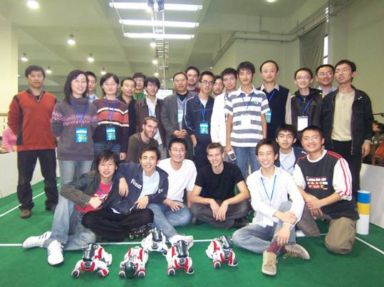 太阳成官网代表44118太阳成城集团参加本次比赛的“同济方舟队”共由6名研究生,6名本科生组成(另有两名德国访问学生友情参加了比赛)。为了备战本次参赛,参赛队员在陈启军教授的指导和学校教务处等部门的支持下,对RoboCup机器人足球进行了持续性研究,始终使我校的四足机器人在国内外保持了优势地位。本次比赛中,队员们不畏强手,先以3∶3踢平中国科学技术大学代表队,又分别以7∶1和5∶1力压厦门大学和北京工业代表队。最后,由于净胜球处于劣势,所以屈居第二。