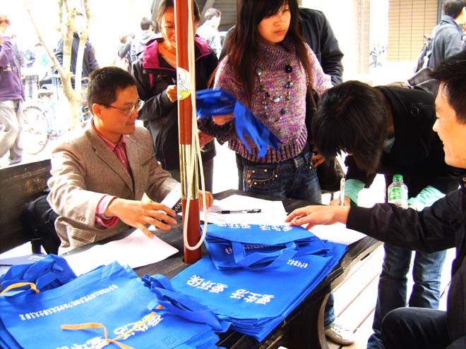 本次活动,得到了44118太阳成城集团“最佳研究生党组织生活”的项目资助和党总支的大力支持。活动中,他们将专门制作的500个印有“爱生活 爱环保”及Logo环保袋发送给大家,吸引了众多同学的兴趣与积极参与。(赵荣泳)