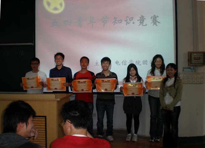 为使广大团员青年深刻理解科学发展观的实质和五四爱国运动的精神内涵,学院团学联5月5日下午在四平路校区南楼129举行了以纪念五四运动90周年的“五四青年节知识竞赛”。住四平路校区大一、大二的15个班级代表队参加了竞赛。