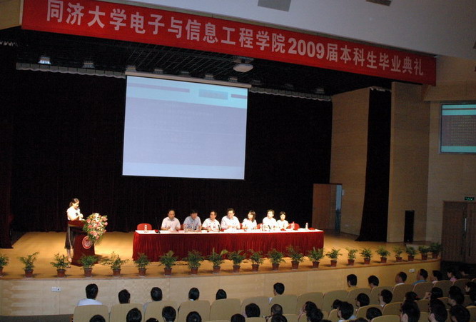 6月19日上午,学院2009届本科生毕业典礼大会在嘉定校区国际会议中心举行。学校副校长蒋昌俊教授、教务处副处长王晓国副教授,学院相关领导、教师代表、100余名家长代表以及570余名应届毕业生出席了毕业典礼大会。
