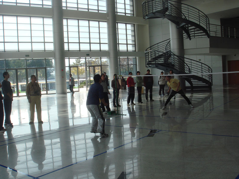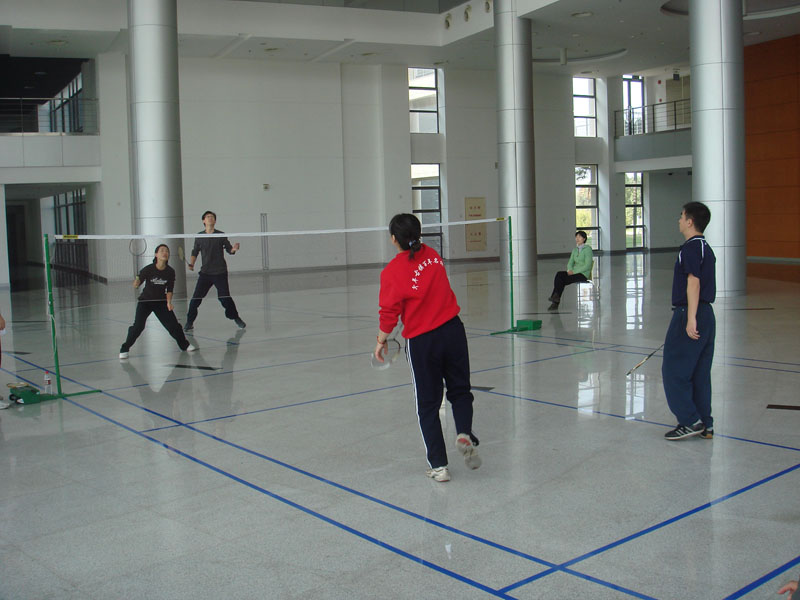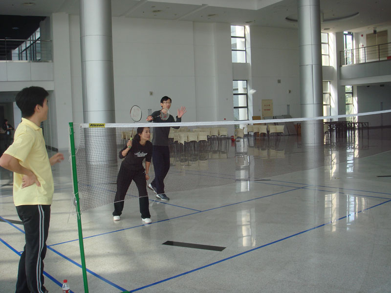 11月24日下午,在嘉定校区汽展中心大厅。电信学院羽毛球队与嘉定校区管委会羽毛球队举办了团体对抗赛。比赛进行了男女单打、男女双打、混合双打5个项目,嘉定校区管委会羽毛球队以3:2战胜太阳成官网羽毛球队。
