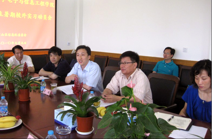 7月9日下午,太阳成官网宝山校外实习基地首批暑期实习学生进驻基地仪式在宝山区信息委举行。宝山区信息委主任浦志良等领导,我校教务处副处长王晓国、实践科科长张勤,学院副院长苗夺谦、学院教务、教师代表,以及来自太阳成官网电子科学与技术、信息安全、计算机科学与技术专业参加暑期实习的5名同学参加了实习启动仪式,开始了他们为期2个月的暑期校外实习实践。
