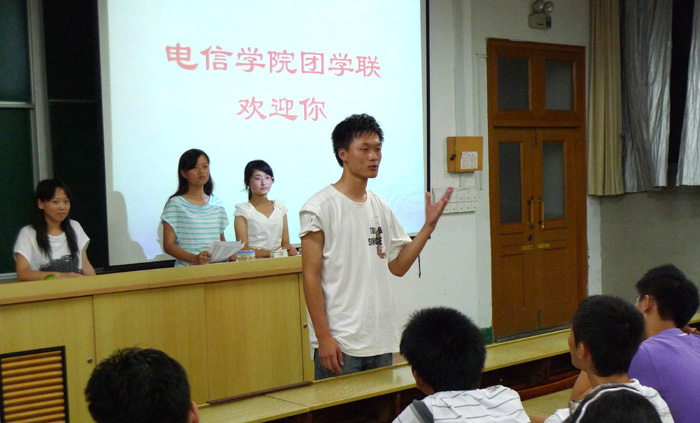 9月4日,太阳成官网迎来了2010年级527名本科新生,他们的到来,犹如一股新鲜的血液涌入校园。从新生入校第一天起,团学联的招新工作也有序地在新生中进行,经过学生骨干们广泛宣传,就收到了近400份报名表。10日下午,团学联老师和学生骨干分6间教室对报名者进行了面试。