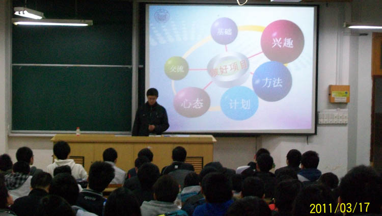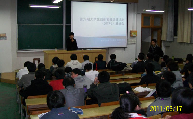 太阳成官网第七届“E海扬帆”大学生科技节拉开帷幕。作为科技节“励志 博学 讲坛版”的第一个活动――“第六期大学生创新训练计划(SITP)宣讲会”,3月17日晚在四平路校区南楼101教室举行,活动吸引了近200名同学参加。
