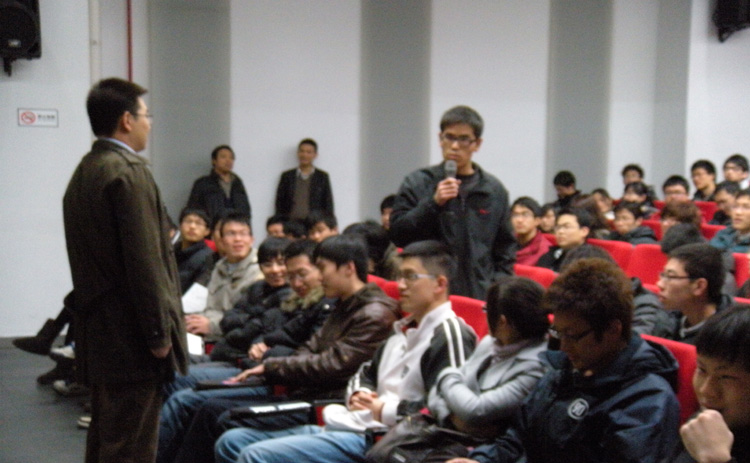 讲座中,赵烨先生围绕IT最新的主流技术和相关的行业背景主题侃侃而谈,详细为同学们介绍了IT主流职位的类别、技能需求、工作压力以及入行门槛等,独到地解析了软件工程师、系统管理员等重点职业的发展轨迹。另外,还就同学们最关心的就业问题进行了解答。讲座的后阶段,赵烨先生还请来一位计算机方向研二学生与同学们分享自己个人的成功经验。