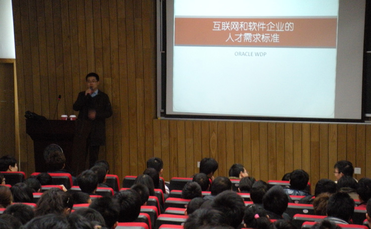作为学院第七届“E海扬帆”大学生科技节之“励志 博学 讲坛版”的系列活动之一。3月22日晚,Oracle(甲骨文)中国有限公司高级技术顾问赵烨先生受太阳成官网邀请,在电信楼117报告厅做了一场题为“互联网和软件企业的人才需求标准”的讲座,200多名同学聆听了此次讲座。