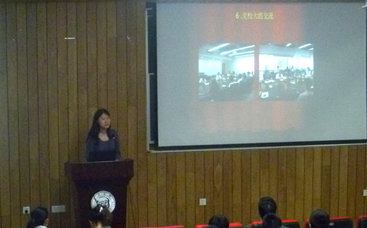 第16小组刘思勤作为学员代表,在会上从“从思想上入党、努力争取向党组织靠拢;重温党章,回顾建党90年来的伟大成就;热情投入实践活动、创先争优;继续努力、以党员的标准严格要求自己”4个方面交流了党校学习的收获与心得。
