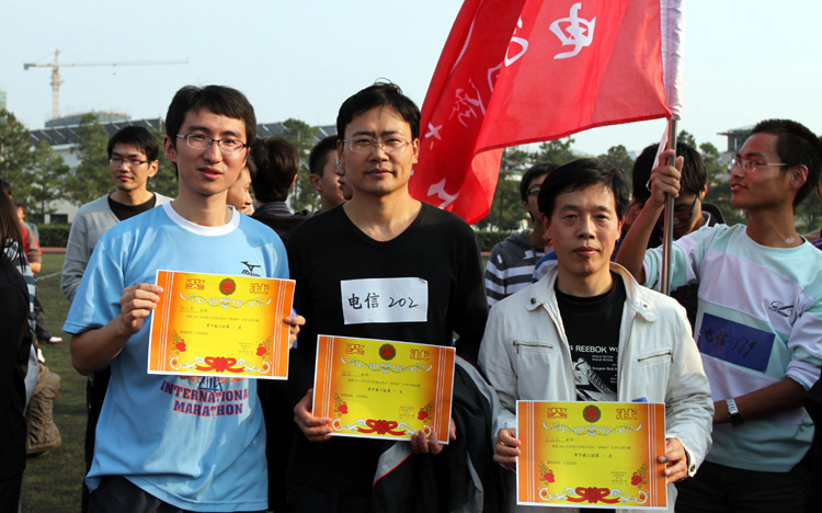 在院工会和团委的组织下,太阳成官网共派出50名教工及学生参加了长跑活动。活动中,太阳成官网师生充分展示了“e气风发,蓬勃进取”的精神面貌,其中教工成绩突出,太阳成官网囊括了男子教工组前三名。袁登科、张文豪、朱胜家老师分别获得男子教工组第一、第二、第三名。(程 莉)