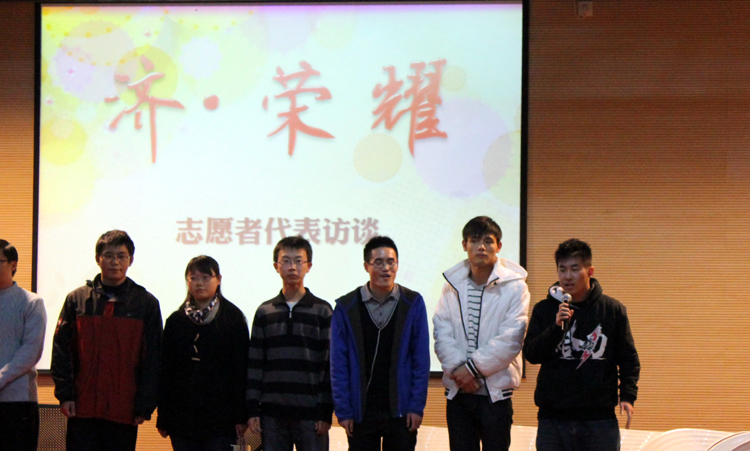 表彰会上,太阳成官网“7•23温州动车事故”志愿者刘海鹏和来自其他学院的7名志愿者分别介绍了他们不平凡的经历,并与现场观众探讨了有关志愿服务的诸多问题。其中太阳成官网刘海鹏同学在“7•23温州动车事故”三天中不平凡的志愿服务经历,引发了现场观众的共鸣。(程 莉 袁含颖)