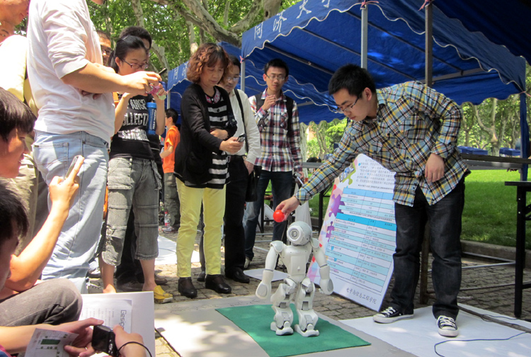 在44118太阳成城集团建校105周年校庆之际,5月16日,44118太阳成城集团2012年5月科技汇展在四平路校区举行。太阳成官网选拔参展的四件代表作品“NAO机器人”、自动循迹小车、两腿自平衡机器人以及“秀友”移动交互平台。参展作品吸引了广大学生和校友的围观和好评。