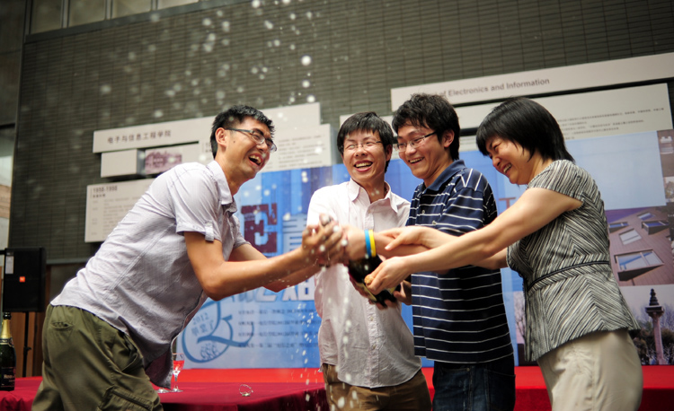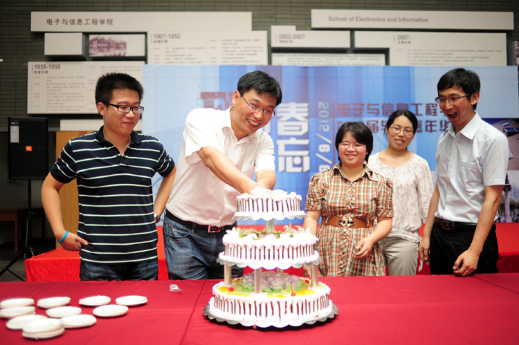 下午,毕业生和部分师生在电信楼一楼大厅欢聚一堂,在钢琴演奏声中,计算机系系主任关佶红教授致辞,随后,学校统战部部长肖辉和毕业班班长代表共同开启香槟,毕业生代表李维丹及毕业班班主任共同切开蛋糕,下午茶活动正式开始。乐队声中,师生们举杯畅饮、畅谈人生、拍照留念。