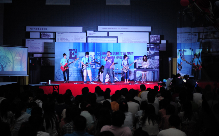 晚上,电信楼大厅举办了毕业晚会,毕业生们欢声笑语、载歌载舞,共度了美好的夜晚。