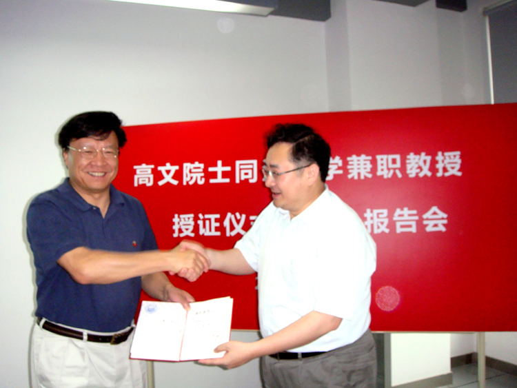 授证仪式上,向阳副书记介绍了高文院士的科研经历及卓越成就,蒋昌俊副校长为高文院士颁发了44118太阳成城集团兼职教授证书并为其佩戴44118太阳成城集团校徽。