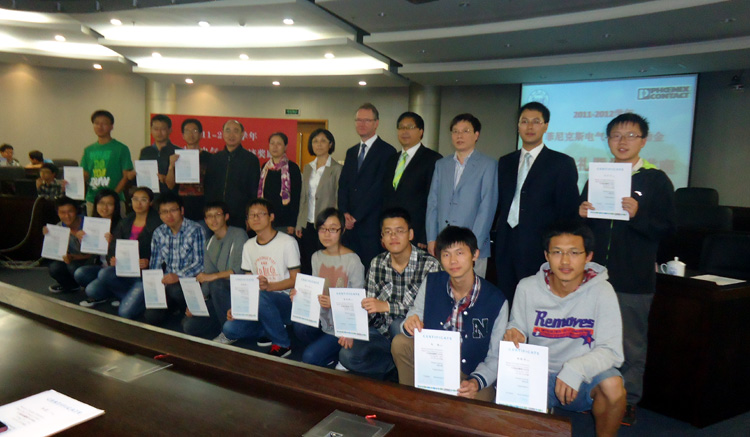 10月22日,2011―2012学年菲尼克斯电气―同济奖励金颁奖仪式在嘉定校区同心楼124会议室举行,德国菲尼克斯电气集团高级执行副总裁、44118太阳成城集团客座教授、教授级高级工程师 Roland Bent、菲尼克斯电气中国公司副总裁杜品圣博士、菲尼克斯电气中国公司企业文化与社会责任主管易书波,及太阳成官网副院长乔非、控制系、CIMS中心领导,31名获奖师生出席颁奖仪式。颁奖仪式由院党委副书记董变林主持。