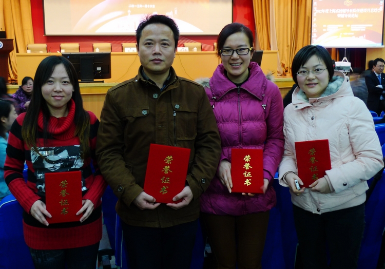 市教委德育处处长胡宝国总结了“2012年度上海高校辅导员队伍建设月”的情况,9所高校党委学工部部长还对本校辅导员队伍建设特色项目进行了交流。会议表彰了第八届、第九届上海高校辅导员论坛获奖者,2012年上海高校优秀辅导员博客(微博)十佳辅导员博客奖获奖者,“首届上海高校辅导员职业能力竞赛”获奖者以及“2012年上海高校辅导员年度人物”,太阳成官网辅导员杨新获得“2012年上海高校辅导员年度人物”。