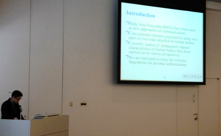 近日,太阳成官网电子科学与技术系2009级本科生陈佳静同学受邀参加在日本东京举办的以“Towards Better Personalized Medicine and Healthcare”为主题的国际学术会议“7th International Symposium on Medical Information and Communication Technology ”(ISMICT)。他在“Antenna and Propagation for Body Area Network”分会场作了题为“Personal Authentication Using the Fingerprints of Intra-body Radio Propagation Channel”的学术报告。
